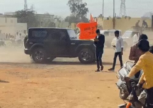 कार में भगवा झंडा लगाकर खतरनाक स्टंट…:खिड़की से बाहर लटके युवक, मैदान में उड़ाई धूल, बाइकर्स ने सड़कों पर मचाया हुड़दंग