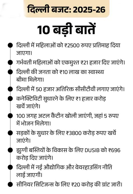 मुख्यमंत्री रेखा गुप्ता ने आयुष्मान योजना के लिए 2144 हजार करोड़ का बजट रखा है। केंद्र सरकार से 5 लाख रुपए तक का मुफ्त इलाज तो मिलेगा ही। साथ ही दिल्ली सरकार भी इसमें अपनी ओर से 5 लाख रुपए जोड़ रही है। यानी आयुष्मान योजना के तहत 10 लाख का इलाज मुफ्त मिलेगा।
