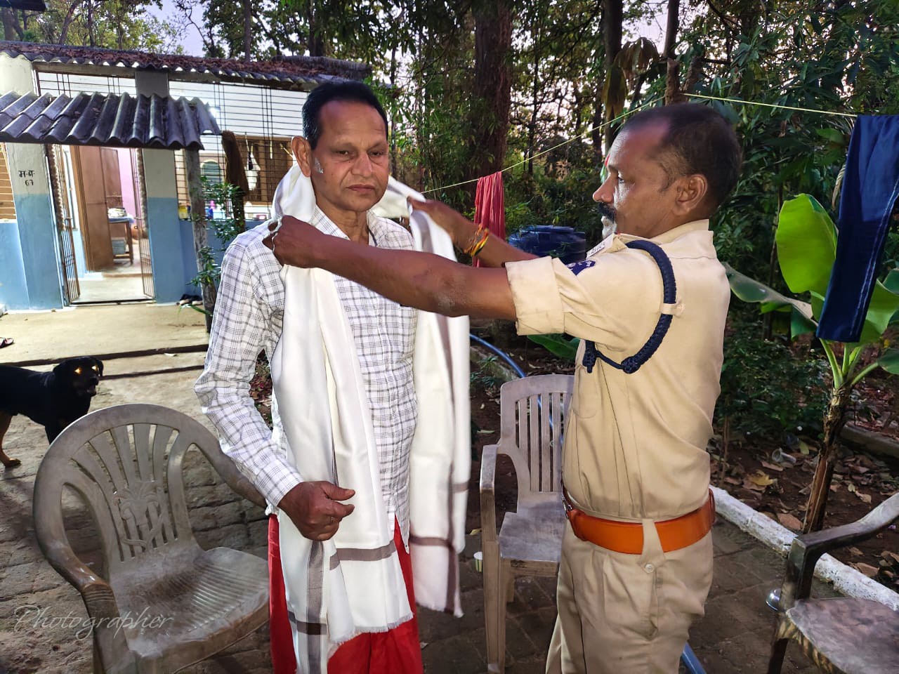 रिटायर्ड पुलिसकर्मी धनीराम राठौर सम्मानित:मोरगा चौकी प्रभारी ने घर जाकर श्रीफल-शाल भेंट की, कार्यशैली की सराहना की