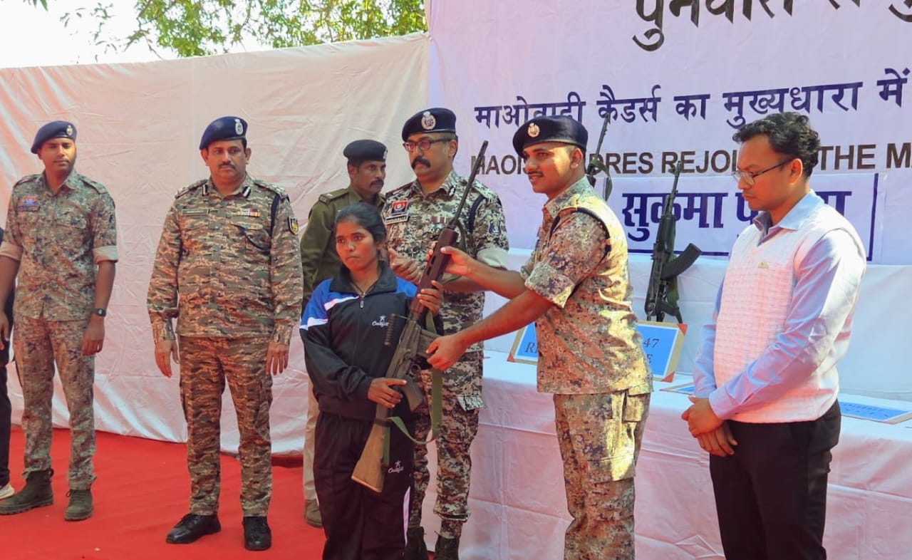 सुकमा में 10 नक्सलियों ने किया सरेंडर:AK-47, SLR जैसे हथियार साथ लेकर आए, 33 लाख के इनामी थे, तिरंगा देकर सरेंडर करवाया गया
