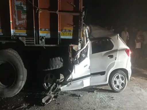 दूसरी घटना करुंमहू चौक के पास हुई। रविवार-सोमवार की दरमियानी रात करीब 2:30 बजे जांजगीर से बिलासपुर जा रही एक तेज रफ्तार मारुति कार सामने चल रहे मालवाहक वाहन से टकरा गई।