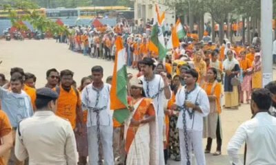 रायपुर ,एजेंसी। हाथों में जंजीर, कैदियों वाले कपड़े, सामने तिरंगा थामे चलती दिखी भारत माता। यह दृश्य बी.एड. प्रशिक्षित सहायक शिक्षकों की रैली का है। भगत...