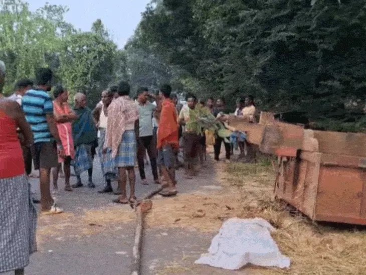 जशपुर : ट्रैक्टर पलटने से 3 की मौत, 8 घायल:मृतकों में 16 साल की लड़की भी, 2 गंभीर; दशहरा देखकर लौट रहे थे