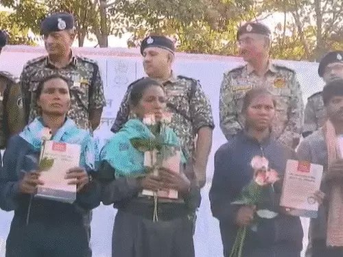 सरेंडर नक्सलियों को गुलाब का फूल और संविधान की प्रति देकर स्वागत किया गया।