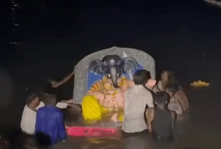 प्रशासन की ओर से खारून नदी को प्रदूषण से बचाने के लिए महादेव घाट और अन्य तालाबों के पास अस्थायी विसर्जन कुंड बनाए गए थे. लेकिन स्थिति पूरी तरह उलट रही है। भाठागांव एनिकट पर हजारों की संख्या में श्रद्धालु प्रतिमाएं लेकर पहुंचे और प्रत्यक्ष रूप से खारून नदी में गणेश प्रतिमाओं का विसर्जन किया।