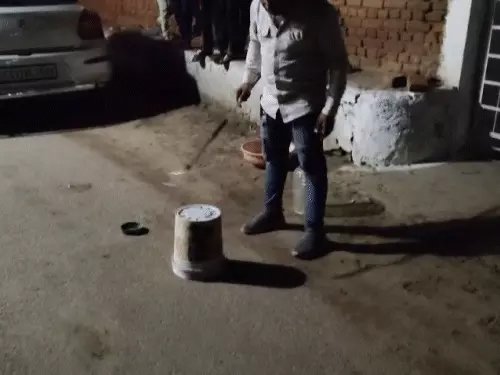 किसी तरह सांप बाल्टी में चला गया, जिससे लोगों ने राहत की सांस ली।