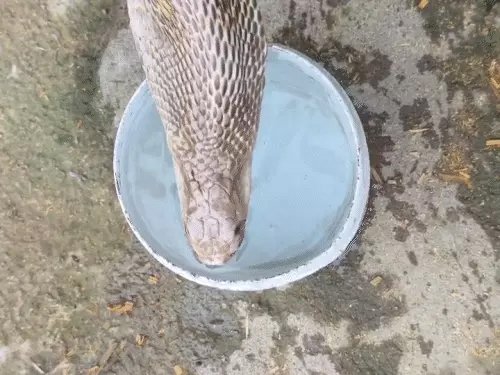 कोरबा में 6 फीट नाग को पिलाया पानी:घर के गेट पर पिटारा भूला सपेरा, खेलते-खेलते बच्ची पहुंची तो लोगों ने हटाया
