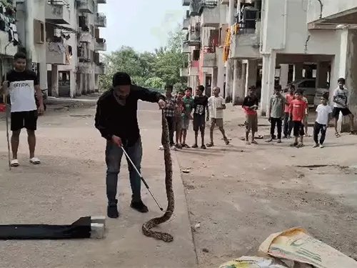 स्नेक कैचर ने अजगर का सुरक्षित रेस्क्यू किया
