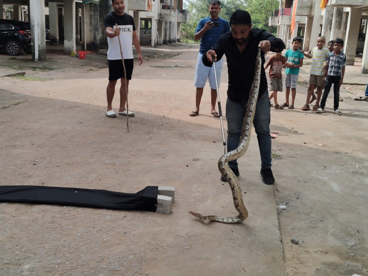 रेस्क्यू टीम ने अजगर को सुरक्षित जंगल में छोड़ा