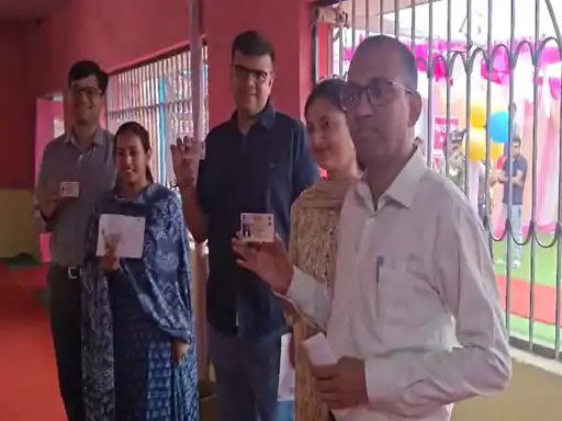 उद्योग मंत्री ने अपने परिवार के साथ किया मतदान
