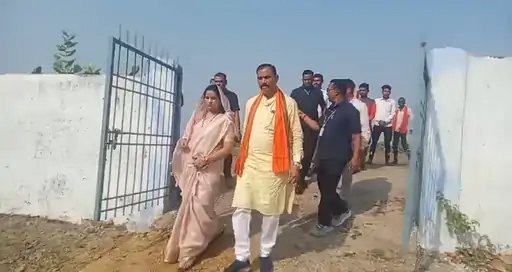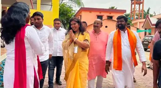 कोरबा के कोसाबाड़ी स्थित निर्मला स्कूल पोलिंग बूथ पहुंचीं सरोज पांडेय