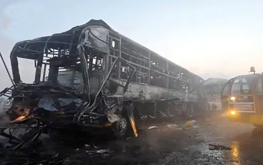 कैसे हुआ हादसा एक्सप्रेस-वे पर घना कोहरा था। माइलस्टोन 127 पर अचानक स्लीपर बस के सामने धुंध आ गई। इसके चलते ड्राइवर ने ब्रेक मारकर स्पीड धीमी की। इसके बाद पीछे चल रही 6 बसें और 4 कारें आकर भिड़ गईं। टक्कर से एसी बस में आग लग गई। लोगों को भागने तक का मौका नहीं मिला।