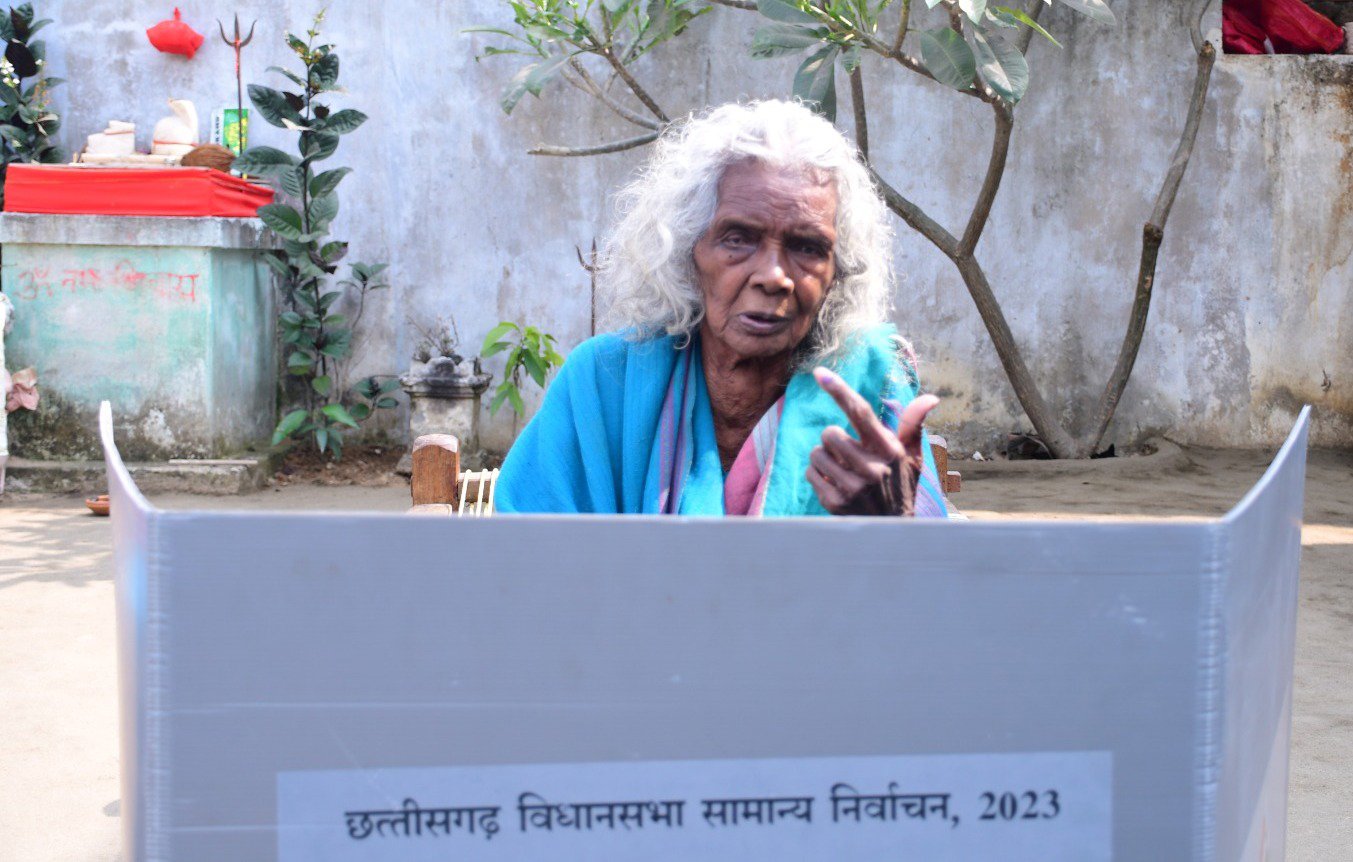 92 वर्षीय वृद्धा श्रीमती फूलकुंवर ने घर में ही किया मतदान