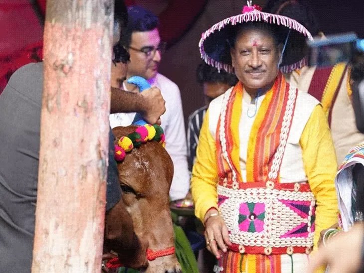 सीएम विष्णुदेव साय की गाय के साथ ये तस्वीर हरेली उत्सव के दौरान की है।