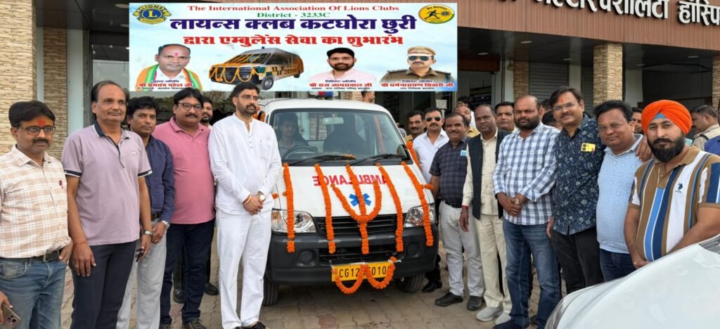 कोरबा/कटघोरा। नगर में जनसेवा की दिशा में एक महत्वपूर्ण पहल करते हुए लायंस क्लब कटघोरा-छुरी द्वारा निःशुल्क एम्बुलेंस सेवा का शुभारंभ किया गया। कार्यक्रम के मुख्य अतिथि क्षेत्रीय विधायक प्रेमचंद पटेल रहे, जबकि नगर पालिका कटघोरा के अध्यक्ष राज जायसवाल एवं नगर निरीक्षक धर्मनारायण तिवारी विशिष्ट अतिथि के रूप में उपस्थित रहे।