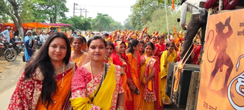 पीले वस्त्रों में सुसज्जित महिलाओं ने सिर पर पवित्र कलश धारण कर जैसे ही यात्रा प्रारंभ की, पूरा ढपढप क्षेत्र “जय श्री राम”, “बोलो पवनपुत्र हनुमान की जय” और “जय बजरंगबली” के गगनभेदी जयकारों से गूंज उठा। श्रद्धा और अनुशासन के साथ आगे बढ़ती इस विराट यात्रा ने हर किसी के मन में भक्ति का संचार कर दिया। ऐसा प्रतीत हो रहा था मानो पूरा क्षेत्र किसी दिव्य आध्यात्मिक महोत्सव का साक्षी बन गया हो।