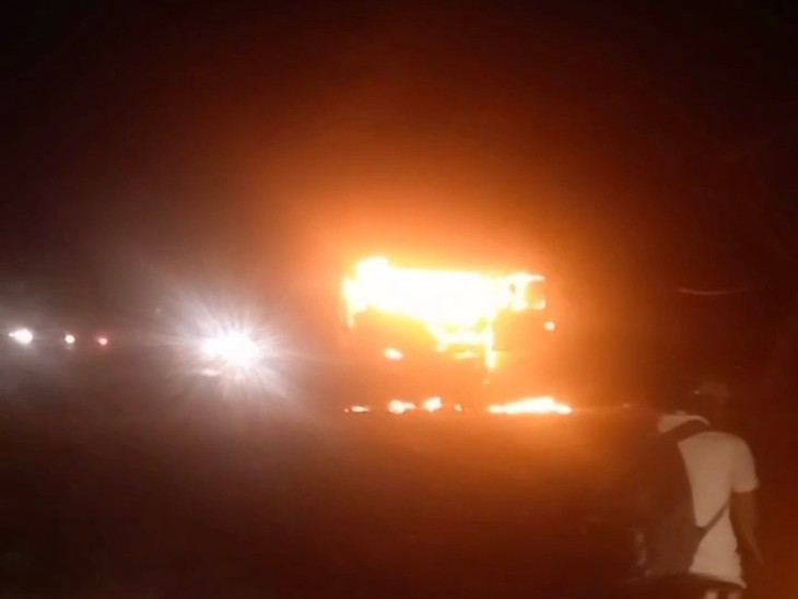 कोरबा रोड पर चलती कंटेनर में लगी भीषण आग…:चांपा के सिवनी गांव में पीएनबी बैंक के पास घटना, पुलिस-फायर ब्रिगेड मौके पर पहुंची