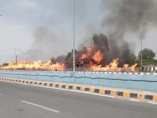 नेशनल हाईवे पर करीब 200 मीटर एरिया में आग लग गई। इसके कारण एक साइड का ट्रैफिक रोक दिया गया।