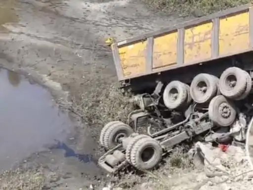 एसईसीएल दीपका खदान में हादसा, अनियंत्रित ट्रेलर तलाब में पलटा, केबिन के नीचे दबा चालक, मौत