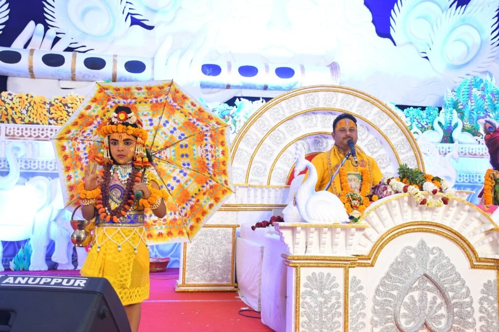 श्रीमद् भागवत कथा के चौथे दिन श्री वामन अवतार, श्रीराम चरित्र, श्री कृष्ण जन्मोत्सव एवं नंदोत्सव की विशेष कथा एवं झांकी रखी गई थी। आज का दिन काफी विशेष रहा। पूरा हाल जहां खचाखच भरा हुआ था, वहीं आज की कथा सुनने केबिनेट मंत्री लखनलाल देवांगन, पूर्व केबिनेट मंत्री जयसिंह अग्रवाल सहित कई दिग्गज पहुंचे थे। श्री देवांगन एवं श्री अग्रवाल ने आचार्य श्री शास्त्री से आशीर्वाद लिया और ब्यास पीठ तथा भगवान कृष्ण की पूजा अर्चना कर कोरबा एवं प्रदेश की खुशहाली एवं समृद्धि के लिए प्रार्थना की।