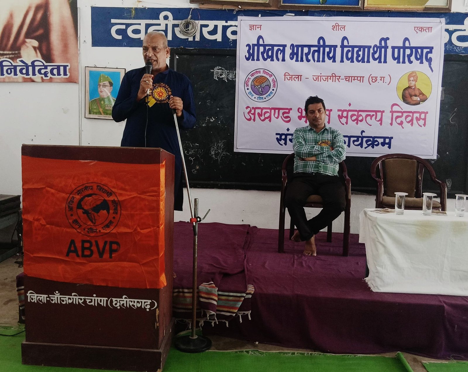 अखिल भारतीय विद्यार्थी परिषद चांपा के कार्यकर्ताओं ने आयोजित किया अखंड भारत संकल्प दिवस संगोष्ठी कार्यक्रम