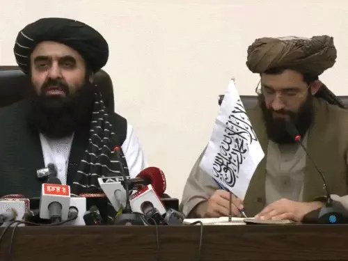 अफगान के विदेश मंत्री अमीर खान मुत्तकी ने शुक्रवार को अफगान दूतावास में प्रेस कॉन्फ्रेंस की।
