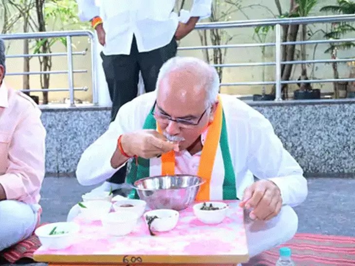 भूपेश बघेल ने संत विजय ऑडिटोरियम, भिलाई में बोरे-बासी खाकर तिहार मनाया।