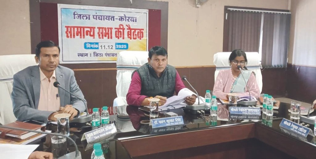 कोरबा। 11 दिसम्बर को जिला पंचायत कोरबा की सामान्य सभा की बैठक जिला पंचायत सभा कक्ष में आयोजित की गई। बैठक प्रारंभ होते ही सदस्य आक्रोशित दिखे, क्योंकि कई निर्देश के बाद भी कटघोरा डीएफओ कुमार निशांत बैठक में नहीं पहुंचे, इसके बाद सदस्यों ने तीखी प्रतिक्रिया व्यक्त करते हुए बैठक बहिष्कार की घोषणा कर दी और सदन से उठकर जाने लगे। सीईओ दिनेश नाग ने मानमनौव्वल कर सभी सदस्यों को मनाया और कटघोरा वनमंडल को छोड़कर अन्य 5 विभागों की समीक्षा की और अधिकारियों को आवश्यक दिशा-निर्देश जारी किया। बैठक की अध्यक्षता जिला पंचायत अध्यक्ष डॉ. पवन कुमार सिंह ने की। जिला पंचायत उपाध्यक्ष श्रीमती निकिता मुकेश जायसवाल, मुख्य कार्यपालन अधिकारी दिनेश कुमार नाग एवं संबंधित विभागों के अधिकारियों की उपस्थिति में जिले के विकास कार्यों की व्यापक समीक्षा की गई।