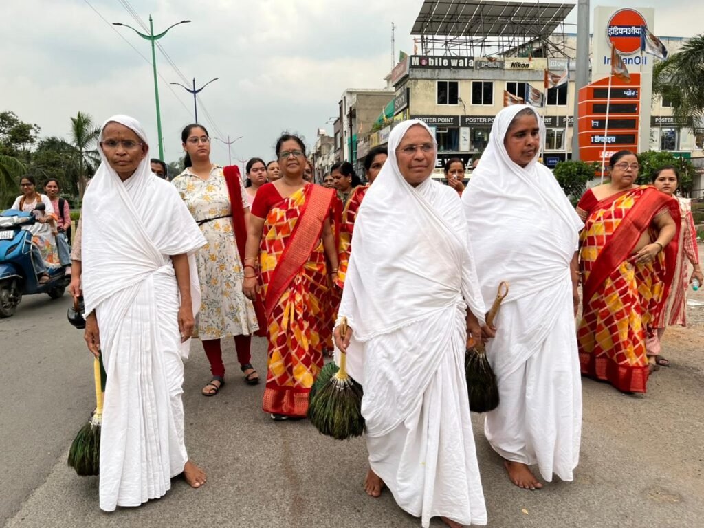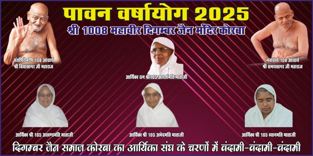 कोरबा। संत शिरोमणि आचार्य गुरुवर श्री 108 विद्यासागर महाराज के शिष्य एवं नवाचार्य श्री 108 समय सागर महाराज के संघ की परमपूज्य आर्यिकारत्न श्री 105 आदर्शमति माता के संघस्थ आर्यिका श्री 105 अखंड मति माताजी, आर्यिका श्री 105 अभेदमति माताजी एवं आर्यिका श्री 105 ज्ञानमति माताजी ससंघ का भव्य मंगल प्रवेश कोरबा नगरी में हो गया है ।वर्तमान में माता ससंघ बुधवारी बाजार स्थित दिगंबर जैन मंदिर कोरबा में विराजमान है ।यह कोरबा वासियों के लिए बड़े ही ऐतिहासिक एवं सौभाग्य की बात है।