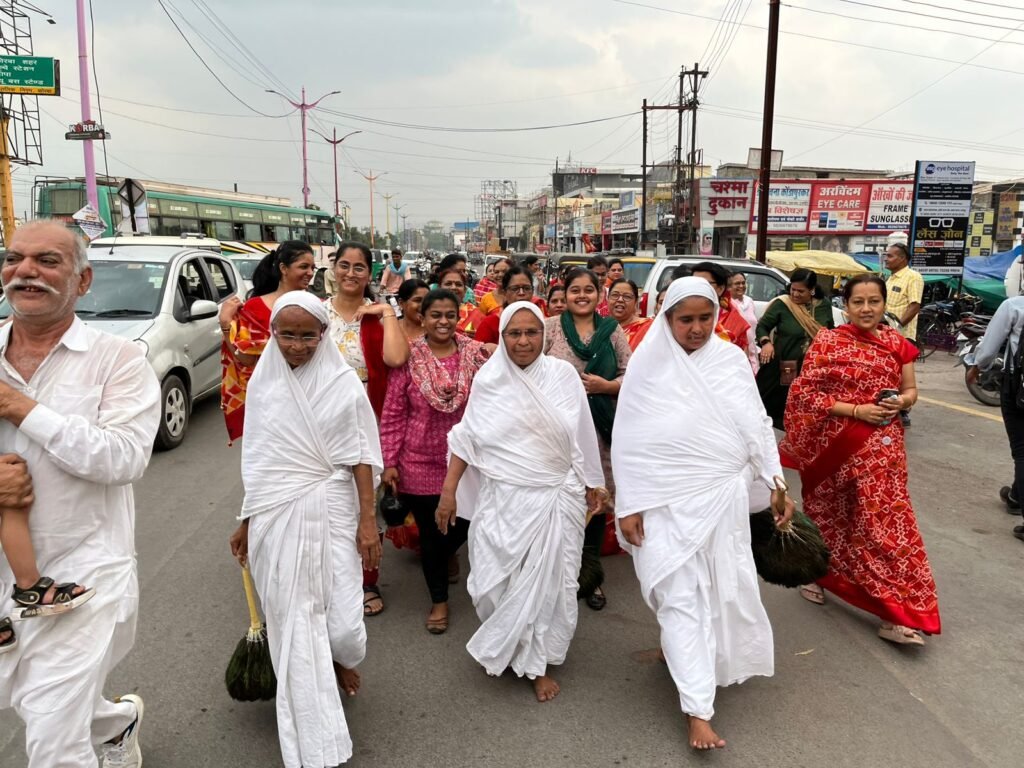 ज्ञात हो कि यह आर्यिकासंघ अकलतरा से बलोदा,सरईश्रंगार , डोंगरी से विहार करते हुए खिसोरा, पंतोरा, तरदा ,कनवेरी होते हुए कोरबा पहुंचा ।जहां जैन समाज के लोगों ने बड़े ही उमंग एवं उत्साह के साथ बेंडबाजे के साथ मुरार का पेट्रोल पंप पर भव्य अगवानी की। तत्पश्चात् गाजेबाजे के साथ नगर में धर्म प्रभावना कराते हुए दिगंबर जैन मंदिर प्रवेशद्वार में दिगंबर जैन समाज की महिलाओं द्वारा मंगल कलश के साथ आर्यिकासंघ की भव्य मंगल अगवानी की गई। जिसमें समस्त जैन समाज के लोग एवं जैन मिलन समिति के समस्त पदाधिकारी, कार्यकर्ता गण उपस्थित हुए।