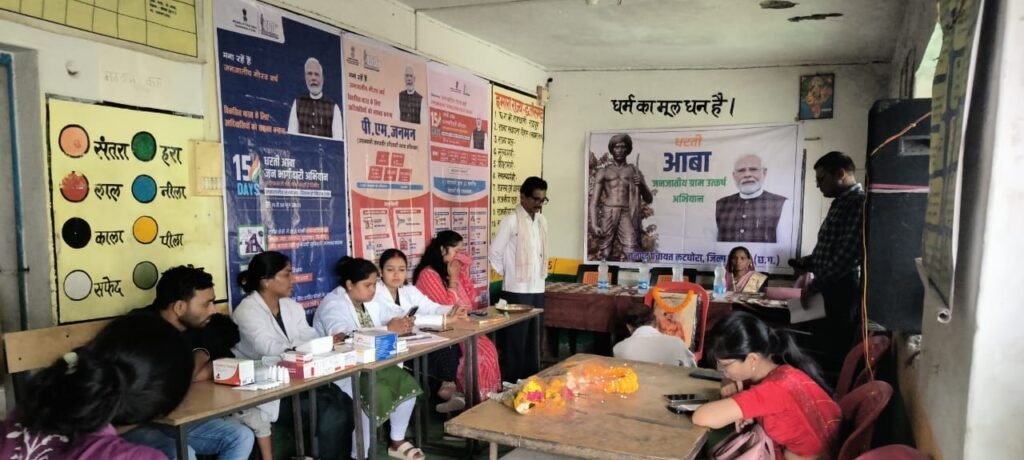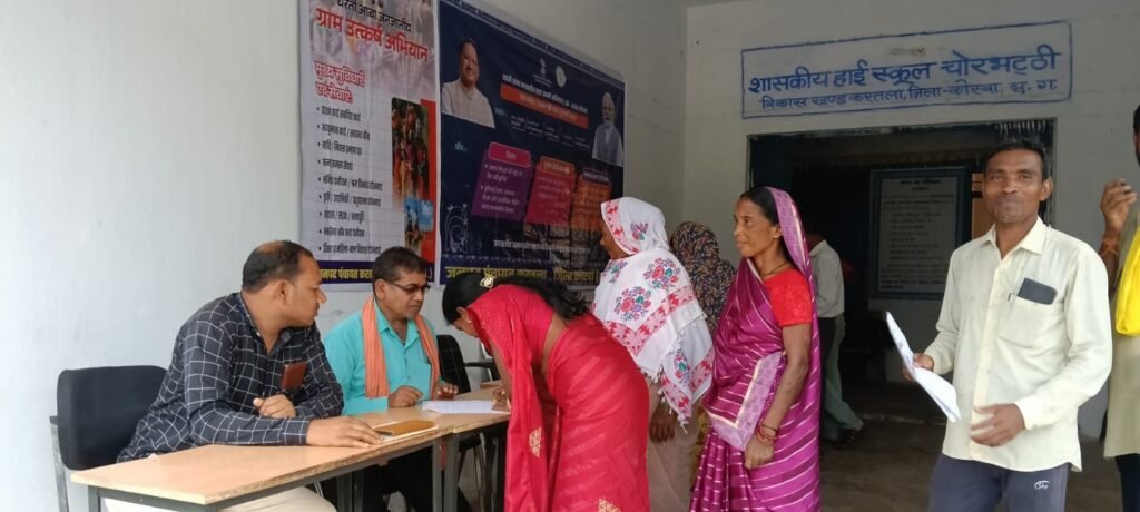कोरबा । जनपद पंचायत कटघोरा के अंतर्गत ग्राम खैरभवना में धरती आबा ग्राम उत्कर्ष अभियान के अंतर्गत एक दिवसीय जागरूकता एवं लाभ संतृप्ति शिविर का आयोजन किया गया। इस शिविर का उद्देश्य क्षेत्र के जनजातीय वर्ग के अंतिम व्यक्ति तक शासन की योजनाओं का शत-प्रतिशत लाभ पहुंचाना है।