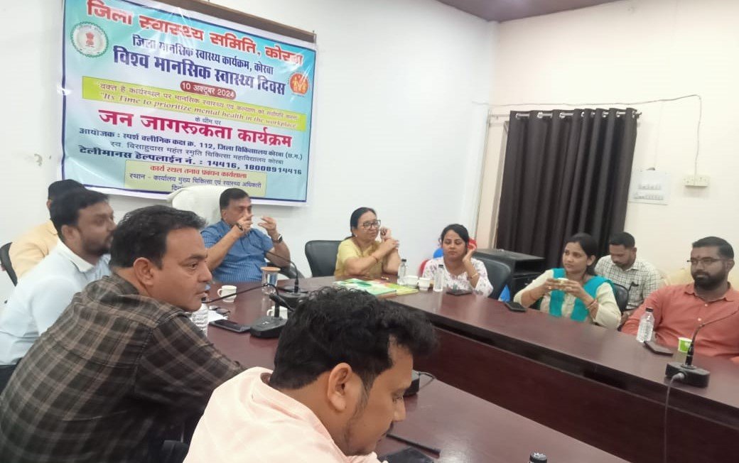 कोरबा । मानसिक स्वास्थ्य कार्यक्रम के अंतर्गत जिले में मानसिक स्वास्थ्य सप्ताह का आयोजन किया गया। स्पर्श क्लीनिक मनोरोग विभाग, शासकीय चिकित्सा महाविद्यालय सम्बद्ध चिकित्सालय द्वारा नर्सिग एवं जीएमसी के छात्र छात्राओं द्वारा ’’वक्त है कार्यस्थल पर मानसिक स्वास्थ्य एवं कल्याण को सर्वोपरि करना“ की थीम पर आधारित जागरूकता कार्यक्रम का आयोजन किया गया। यह थीम लोगों, संगठनों और समुदायों के लाभ के लिए कार्यस्थल में मानसिक स्वास्थ्य और भलाई के महत्व पर प्रकाश डालती है।
