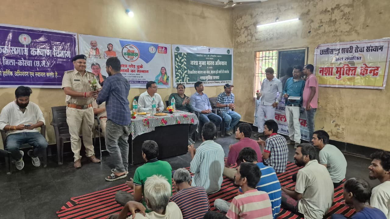 इस अवसर पर अतिथियों का स्वागत बुके भेंट कर किया गया। मुख्य अतिथि अबकारी विभाग से सुकांत पांडे (S.I.) एवं विक्रांत पांडे (S.I.) ने अपने उद्बोधन में नशामुक्त जीवन के लिए आत्मविश्वास और दृढ़ इच्छाशक्ति पर बल दिया। कोरबा मेडिकल कॉलेज के मानसिक स्वास्थ्य विभाग से डॉ. साकिया ने मानसिक स्वास्थ्य एवं परामर्श की अहमियत पर प्रकाश डाला। परामर्शदाता तराचंद एवं संजय तिवारी ने संयम और आत्मनियंत्रण को जीवन में अपनाने की आवश्यकता बताई। समाजसेवी राणा मुखर्जी ने लाभार्थियों को सकारात्मक सोच और समाजसेवा की ओर प्रेरित किया। उल्लेखनीय है कि छत्तीसगढ़ शबरी सेवा संस्थान लखनपुर जिला सरगुजा छग द्वारा जिला कोरबा में 1 दिसंबर 2025 से नशामुक्ति केंद्र का संचालन किया जा रहा है । जहां पर नशामुक्ति केंद्र में रहने वाले लोगों को निःशुल्क भोजन,दवा,योग व्यायाम, काउंसलिंग का कार्य करते हुए नशा छुड़ाने का काम किया जा रहा है।इस अवसर पर प्रभजोत कौर ने बताया कि छत्तीसगढ़ शबरी सेवा संस्थान के प्रदेश सचिव सुरेन्द्र साहु के मार्गदर्शन ने यह निःशुल्क नशामुक्ति केंद्र संचालित हो रहा है । अगर कहीं भी कोई भी नशा से पिडित व्यक्ति मिलें तो तुरंत सुचना प्रदान करें जिससे कि उसे नशामुक्ति केंद्र कोरबा में भर्ती किया जा सके।