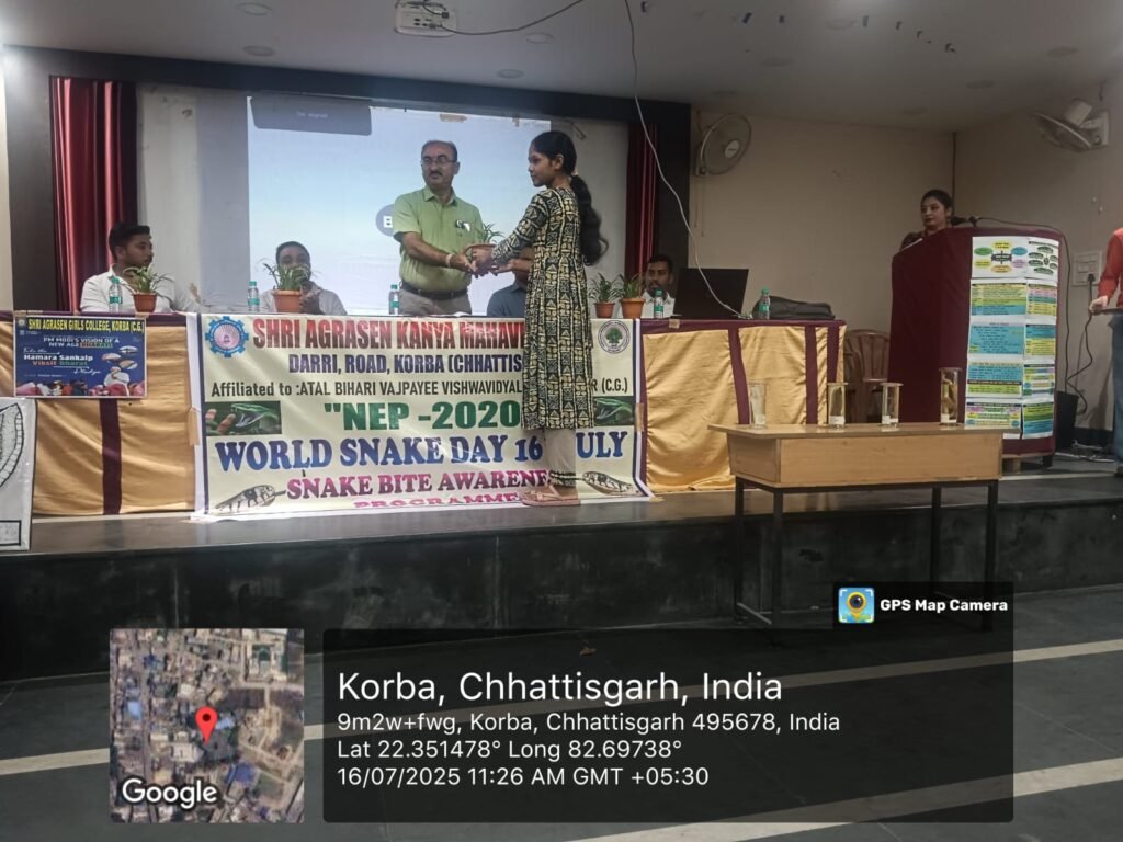 “विश्व सर्प दिवस “पर अग्रसेन कन्या महाविद्यालय में जागरूकता कार्यक्रम का आयोजन