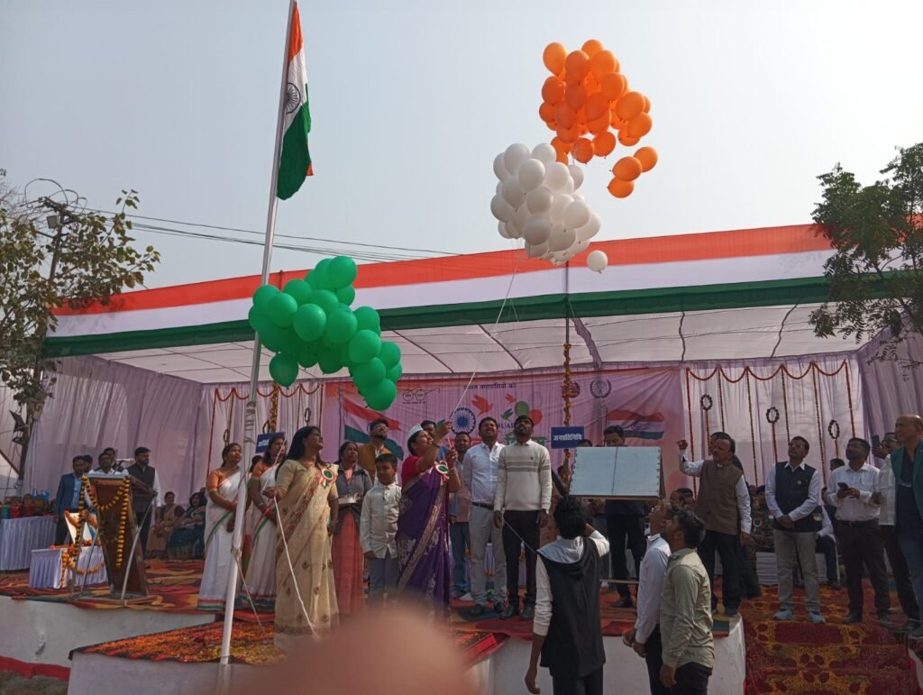 नगर पालिका परिषद बांकीमोंगरा – आजादी का जश्न नए अंदाज में दशहरा मैदान गजरा बांकी मोंगरा में 77वे गणतंत्र दिवस को यादगार बनाते हुए पालिका के अध्यक्ष विकास सोनी झा और पालिका के मुख्य अधिकारी ज्योत्सना टोप्पो द्वारा ध्वजारोहण कर तिरंगा रंग के गुब्बारो को उड़ाकर आजादी का जश्न मनाया।