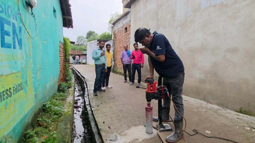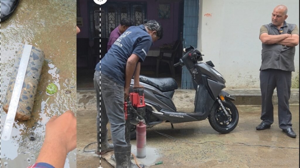 वार्ड क्रमांक 08 जंगल साइड में पहले सैंपल में 5 इंच दूसरा 4.5 इंच और तीसरा सैंपल में 5 इंच कोर कटिंग आई यहां का निर्माण कार्य जय राजकिशोर पांडे कंस्ट्रक्शन के द्वारा की गई है।