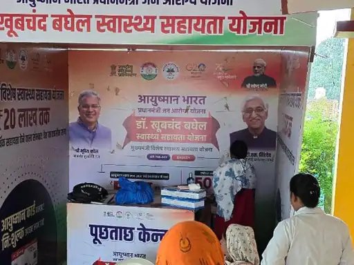स्वास्थ्य शिविर में लगा पूर्व CM भूपेश बघेल का बैनर:कोरबा में 1 साल बाद भी नहीं बदले गए होर्डिंग-बैनर; लोगों ने ली चुटकी