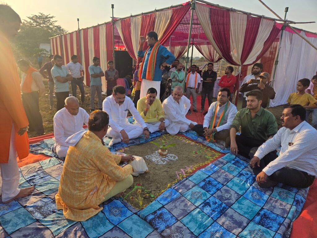 बांकी मोंगरा :– आज दिनांक 06 अप्रैल भाजपा स्थापना दिवस पर मां नीरा हथकरघा बुनकर सहकारी समिति मर्यादित के परिसर में हनुमान मन्दिर निर्माण का भूमि पूजन का आयोजन विधि विधान से संपन्न किया गया।