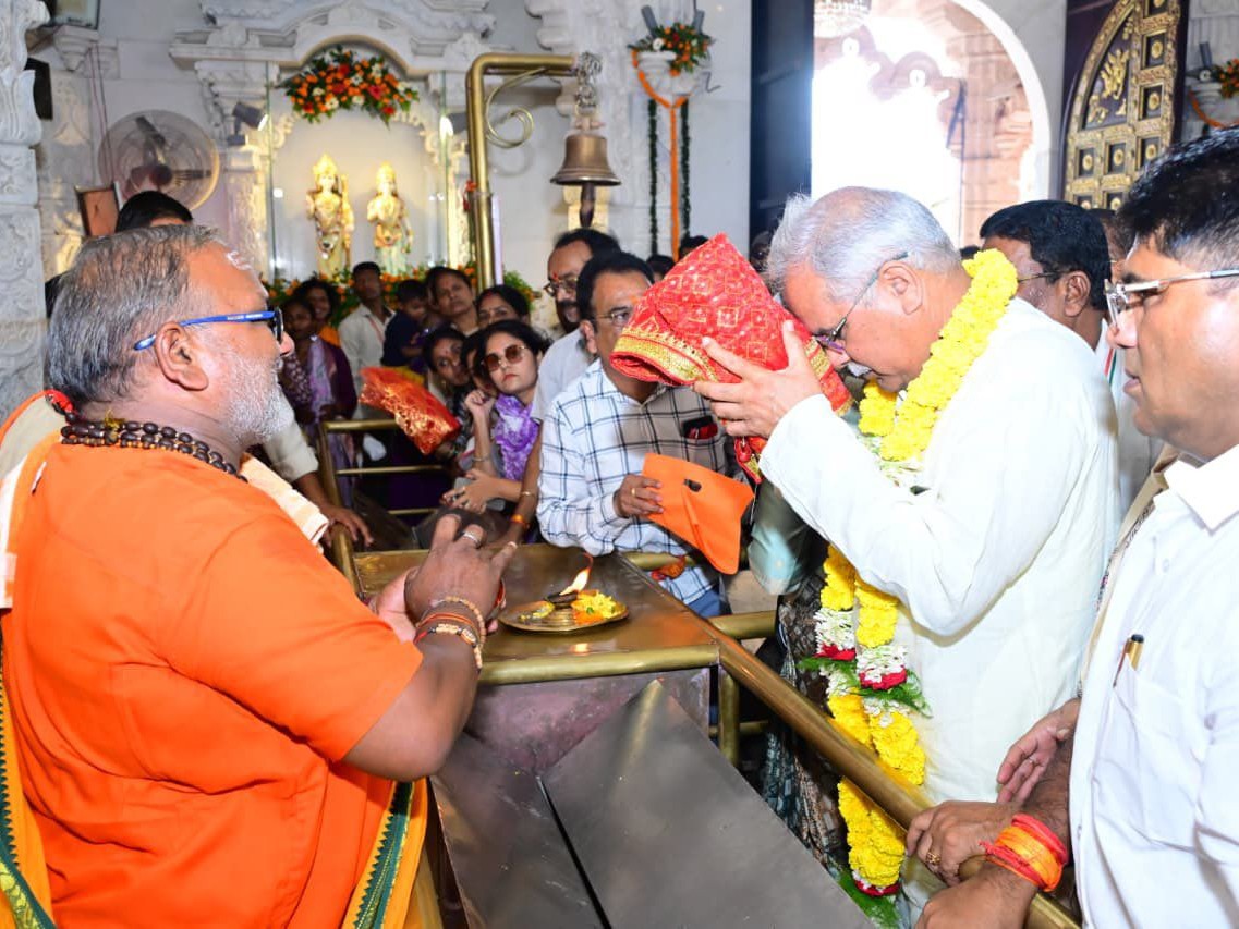 भूपेश बघेल ने किया मां बम्लेश्वरी के किए दर्शन:बोले- माता रानी के दर्शन आसान, लेकिन विष्णु के दर्शन कठिन, कार्यकर्ताओं से भी मुलाकात की