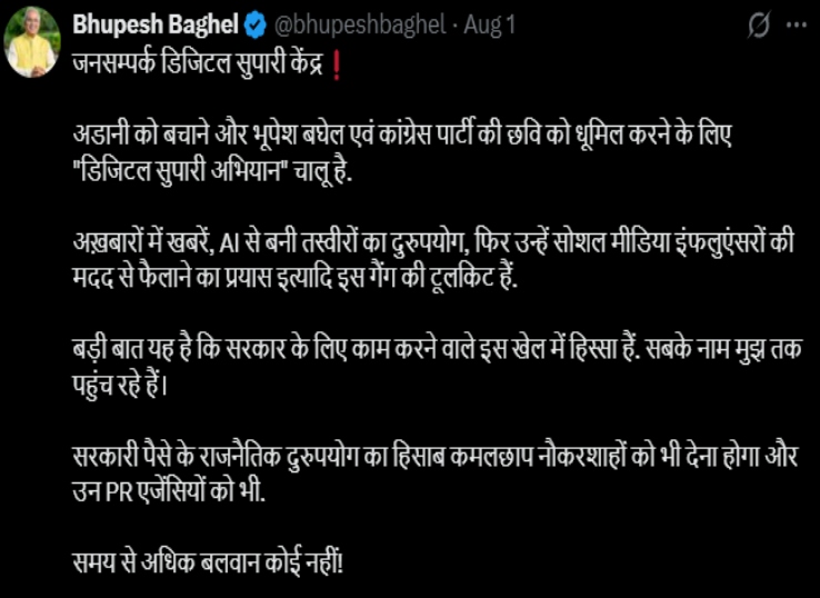 भूपेश बोले– ‘डिजिटल सुपारी गैंग’ कर रहा छवि खराब:पूर्व सीएम ने कहा-सबका हिसाब होगा, राधिका बोलीं- कका ने करीबियों को दिलवाया करोड़ों का फायदा