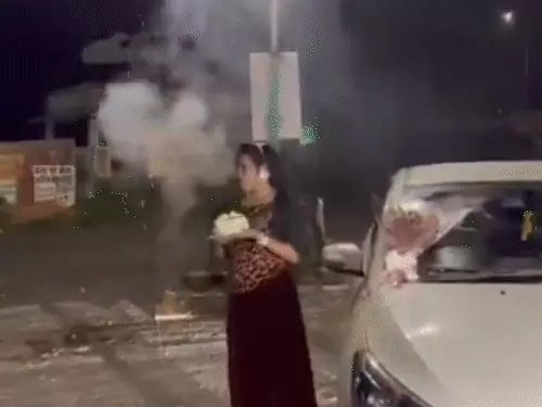 मनेंद्रगढ़,एजेंसी। छत्तीसगढ़ के स्वास्थ्य मंत्री श्याम बिहारी जायसवाल के निज सचिव राजेंद्र दास ने अपनी पत्नी का बर्थडे सड़क पर सेलीब्रेट किया। सड़क पर लग्जरी कार की बोनट पर केक काटा, फिर जमकर आतिशबाजी भी की गई। आतिशबाजी का वीडियो वायरल हो रहा है।