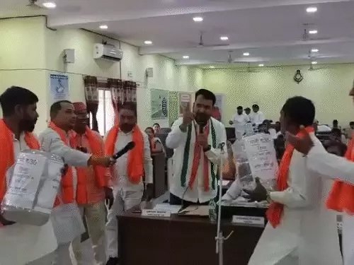 दरअसल, बिरगांव निगम में गुरुवार को कांग्रेस के महापौर नंदलाल देवांगन साल 2025-26 का बजट भाषण पढ़ रहे थे। निगम में सभापति समेत सभी दलों के पार्षद मौजूद थे। इस दौरान अचानक भाजपा पार्षद पानी का कंटेनर लेकर महापौर के सामने पहुंच गए। उन्होंने महापौर के खिलाफ नारेबाजी करनी शुरू कर दी। फिर पानी के कंटेनर को खोलकर महापौर पर पलट दिया।