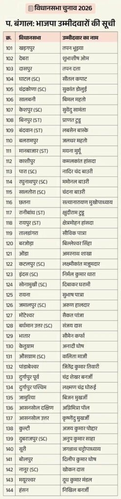 बंगाल में BJP की पहली लिस्ट, 144 नाम:सुवेंदु अधिकारी को ममता की दोनों सीटों भबानीपुर-नंदीग्राम से टिकट, केरल में 47 कैंडिडेट्स की घोषणा