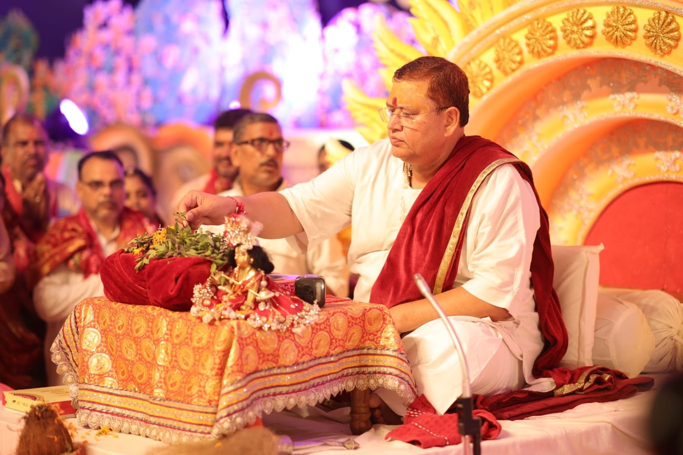 मेहर वाटिका में कथा व्यास अतुल कृष्ण भारद्वाज करा रहे भागवत का रसपान