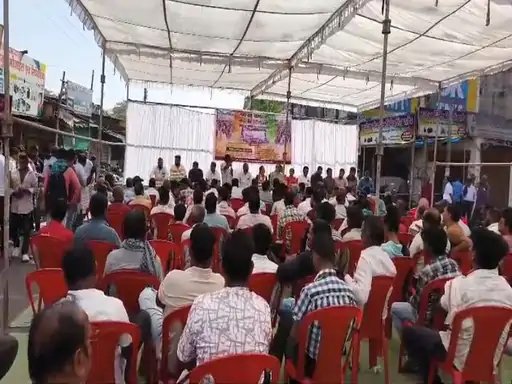 विधायक व्यास कश्यप समेत पदाधिकारी भी आंदोलन में शामिल।