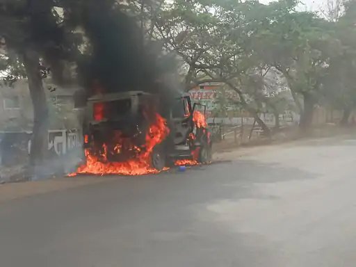कोरबा में धू-धूकर जली बोलेरो,ड्राइवर समेत 2 लोगों ने किसी तरह बचाई जान, गाड़ी में ब्लास्ट से घबराए लोग