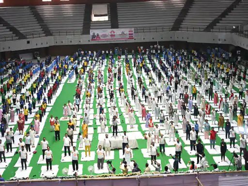 बिलासपुर के बहतराई स्टेडियम में सामूहिक योग का आयोजन