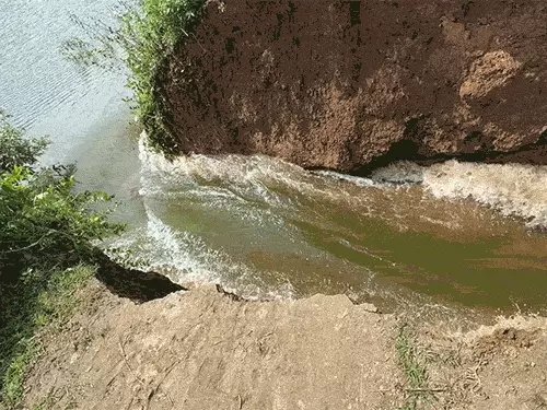 गेरसा बांध का मेड़ टूटने से पानी तेज बहाव से बह रहा है।