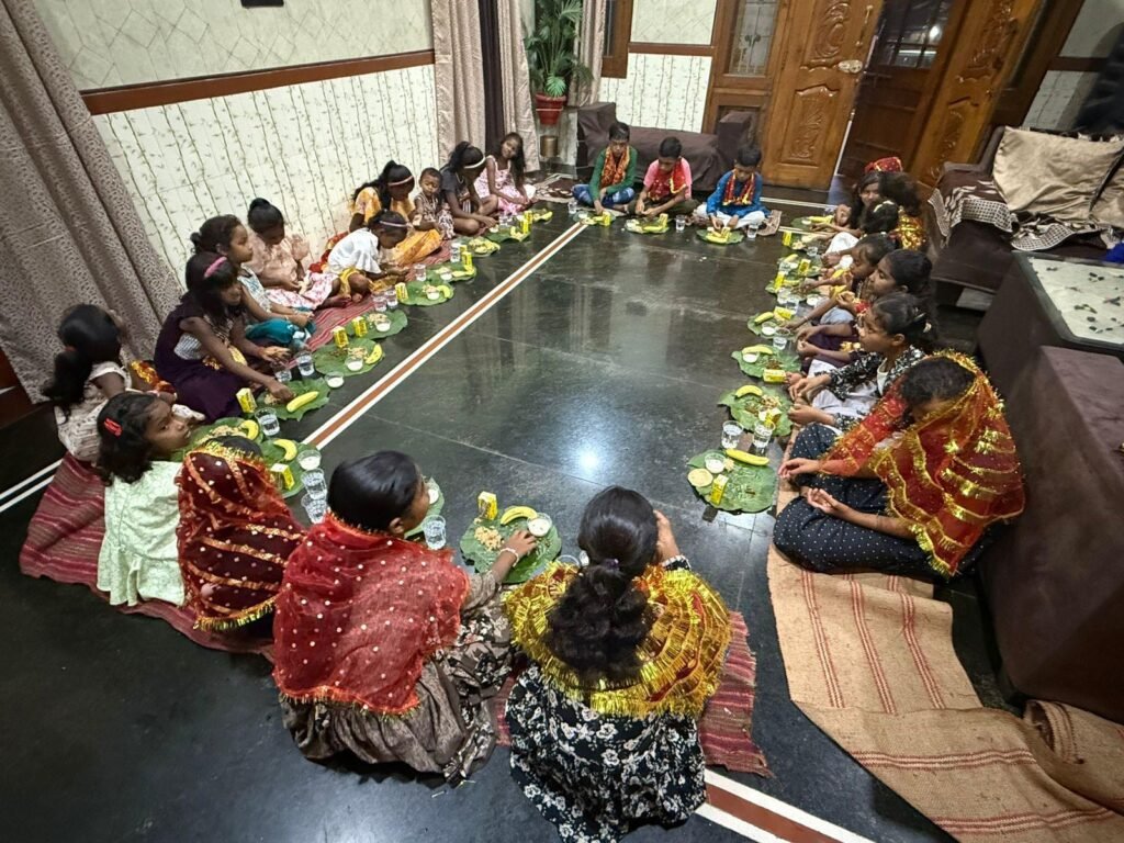 देवी स्वरूपा कन्याओं को कराया गया छप्पन भोग का भोजन