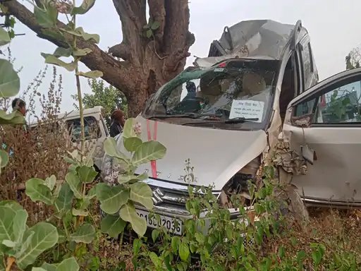 ड्राइवर को झपकी आने से कार पेड़ से टकराई